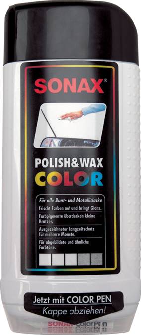 Barevná leštěnka SONAX v 6 barevných odstínech. Čistí, leští a konzervuje najednou, zakryje i drobné škrábance na laku. Osvěžuje barevný vzhled laku a přináší vysoký lesk s dlouhodobým účinkem. Je vyrobena na vodou ředitelné bázi, bez rozpouštědel, obsahuje přírodní vosk, a proto nepoškozuje původní lak.